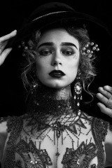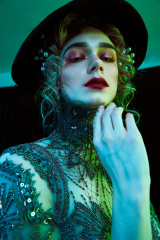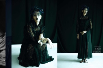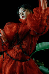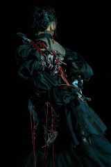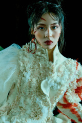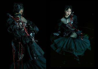 服裝設計來自「英聖時裝學院設計師 吳詩卉JOEY」,曾與藝術家「Gulistan」合作《宮廷》系列服裝,18年6約作品在北京789登入首秀,18年9約作品《新生》登上紐約時裝周。自吸血鬼影片始祖《德拉庫拉》起,人們對吸血鬼的刻畫似乎多重在男性,鮮有以雌性吸血鬼為主的作品,除屈指可數的《吸血鬼女伯爵》外,其他的多為影片推動影片主線而設。而此次我們以「吸血鬼新娘」為主題,力求呈現一個立體的,飽滿的,鮮活的雌性吸血鬼,這...