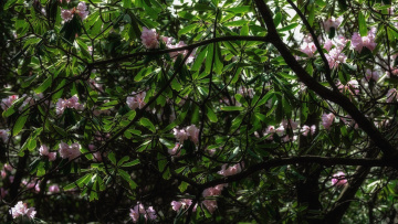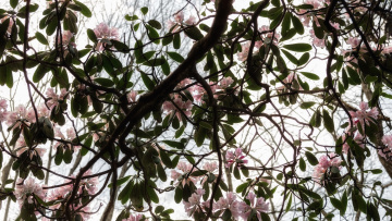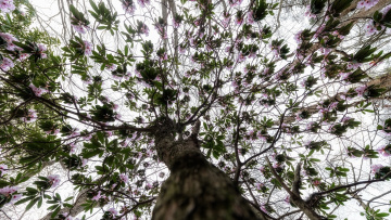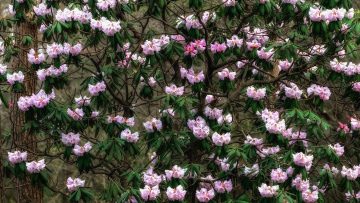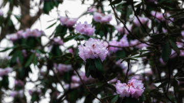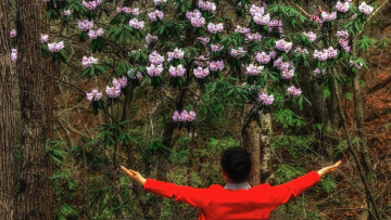 2024年4月12日,湖北宜昌夷陵区西塞国国家森林公园和湖北宜昌夷陵区圈椅淌国家湿地公园云锦杜鹃花开正盛。