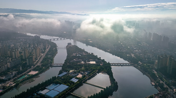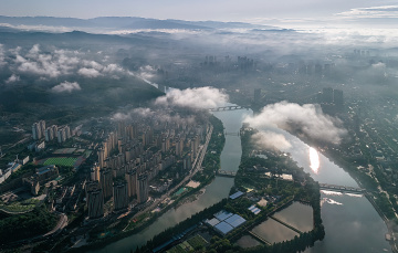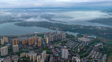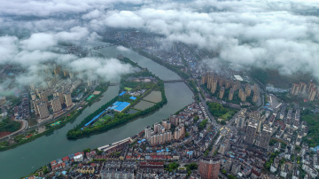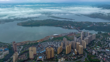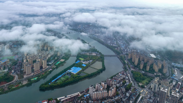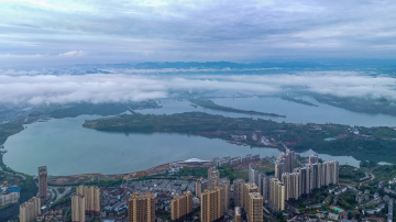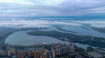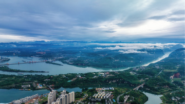 6月5日傍晚,湖北省宜昌市雨过天晴,不远处的群山中升起白雾,与蜿蜒的长江三峡西陵峡、葛洲坝水利枢纽工程以及高楼林立的城市构成一道独特的景观,宛如一幅泼墨山水画。宜昌地处长江中上游结合处,素有“三峡门户”之称,更被誉为“水电之都”,拥有“一半山水一半城”的城市风貌。
