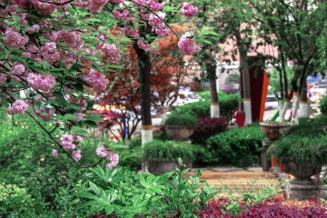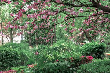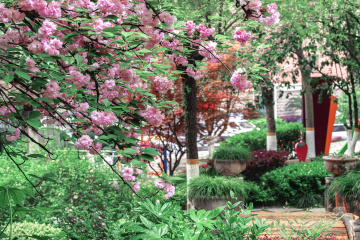 樱花盛开季,近日,湖北宜昌夷陵区香山凤凰城小区内数十棵樱花竞相开放,美不胜收!