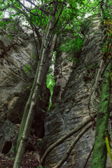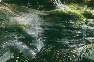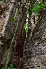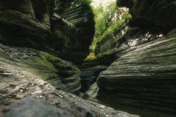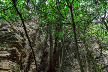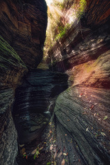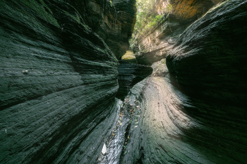 凉风沟,位于长江三峡西陵峡畔湖北省宜昌市夷陵区乐天溪镇兆吉坪村,隶属于三峡奇石文化长廊。凉风沟沟长约1公里左右,绝妙的岩壁层层叠叠,深邃的夹缝沟起伏婉转,流水潺潺。凉风沟属于典型的喀斯特地貌,起源于三叠纪时代,距今有3亿年左右。层层叠叠的沉积岩充满着厚重的岁月沧桑感,一条沟,尤如一部记录地球亿万年历史的万卷书。一层层如波浪般的岩石静默地注视着历史的变迁,展现着惊险、奇特的喀斯特容貌,巍巍矗立在山涧。