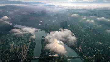 5月5日日清晨,昨天一场大雨后的湖北宜昌长江江面上及宜昌城市上空,烟雾缭绕,雾气蒸腾,天空如薄纱笼罩,影影绰绰,好一出人间仙境。我站在楼顶,环顾四方,心潮澎湃,远处的葛洲坝水利枢纽工程在雾中若隐若现,放眼望去,城市与远山如一幅水墨画般充满诗意。