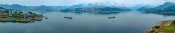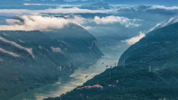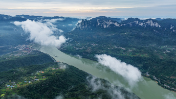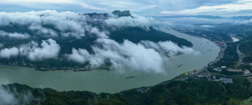 10月7日,久雨初晴的长江三峡大坝以及西陵峡莲沱段,云雾缭绕,美不胜收。 西陵峡西起湖北省秭归县西的香溪口,东至湖北省宜昌市南津关,历史上以其航道曲折、怪石林立、滩多水急、行舟惊险而闻名。中华人民共和国成立以后,经过对川江航道的多年治理和葛洲坝水利工程、三峡大坝建成后,水势已趋于平缓,然绮丽景观如旧。 今年中秋、国庆长假,三峡大坝及长江三峡沿线尽管天气欠佳,但仍游人如织。