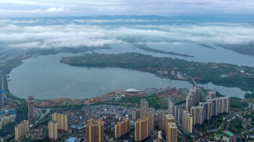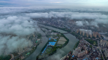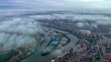 2023年5月17日清晨,湖北宜昌现云海景观,城市在云雾笼罩下美如仙境。16日,宜昌迎来了一整天的小到中雨,全市气温出现明显下降。29日清晨,依山傍水的宜昌雨过天晴,江面上和群山间云缠雾绕,从空中俯瞰,整个城市在云雾缭绕中若隐若现,美轮美奂。由于我卧室在西面,等得到消息赶紧起床,已错过最佳时机,但仍有朵朵白云漂浮在城市上空。
