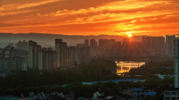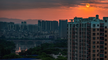 2023年5月9日清晨6点前,一轮红日在湖北省宜昌市夷陵区小溪塔城市的东边冉冉升起,映红了半边天。睡梦中的我被一片红光照醒,赶紧起床拿上照相机和三脚架跑到客厅阳台,架稳照相机,用5张包围曝光模式拍摄了一组久违了的从升起到进入云层的日出照片,感觉还不错!