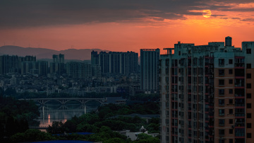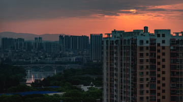 2023年6月30日,今天气温很高,太阳很大,下午5点多钟,夕阳西下,我站在阳台上,极目远眺,百里荒上空一排白云在夕阳的照耀下,熠熠生辉,小溪塔河心公园、星湖湾等房屋建筑也披上了一层金色的外套,我架上三脚架,将这一美丽光影记录下来,夜来临,华灯初上,我又将这一时刻予以记录,感觉很好!