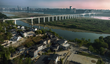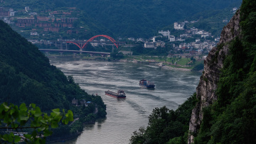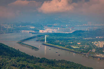 湖北省宜昌市长江航道、跨江铁路、沿江公路汇集。