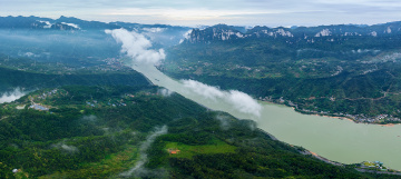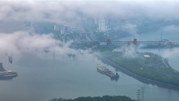自5月中旬以来,长江三峡西陵峡及三峡大坝区域进入了一年一度的雨季。进入雨季,连绵的阴雨成了三峡大坝库区雨季长江三峡的主角。5月22日,三峡大坝坝上库首第一县的湖北宜昌秭归县县城上空被浓雾笼罩,站在坝区库首第一镇湖北宜昌夷陵区太平溪镇五厢庙村的移民新村望向长江对面的秭归县城,云雾缭绕,宛若仙境且江面平静,一片祥和。进入汛期,三峡大坝的防洪功能将会全方位地发挥。