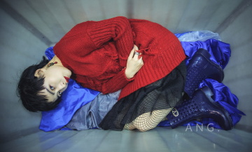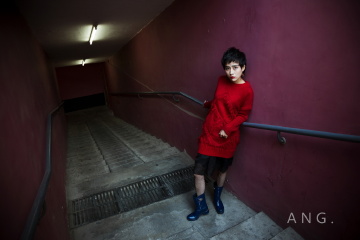 红毛衣女孩-地下垃圾房 摄影师:ANG(自己) 微信:18781992883 模特:小鱼 化妆:王帅