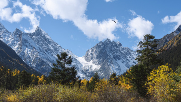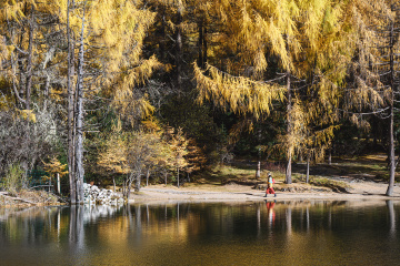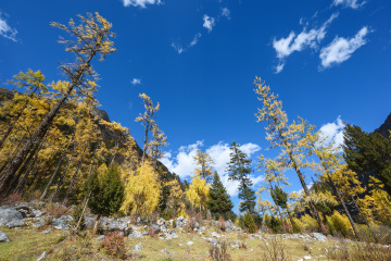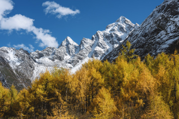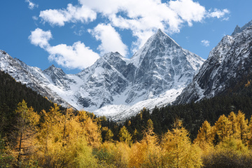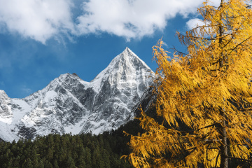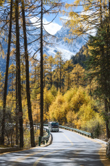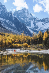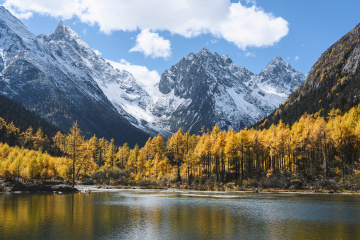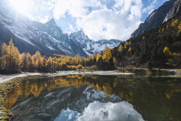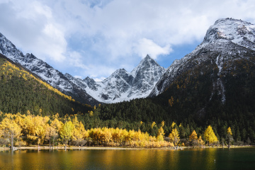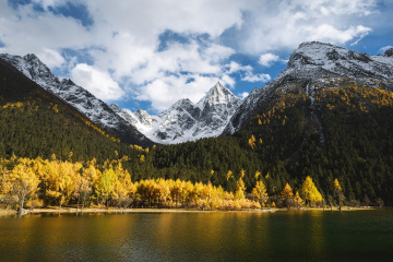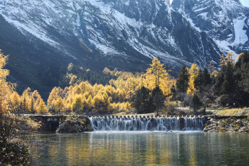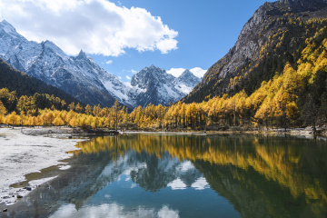 很少有一个地方能将雪山、秋日金黄的树林和湖泊搭配的如此完美,毕棚沟无疑做到了。