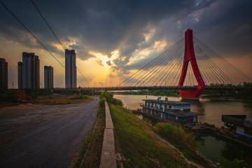 树影M马洪伟 日落前后的涡河三桥+安徽涡阳