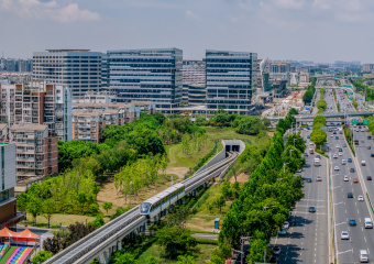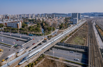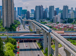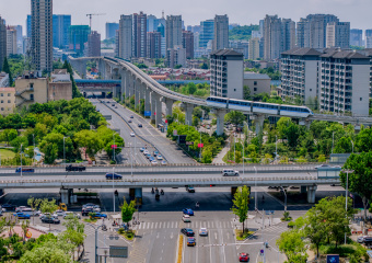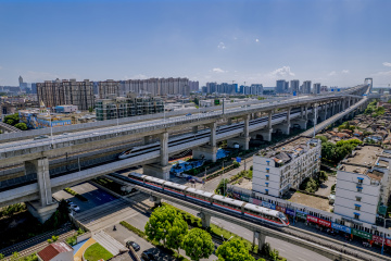 芜湖单轨1号线与芜湖长江大桥、三桥交汇