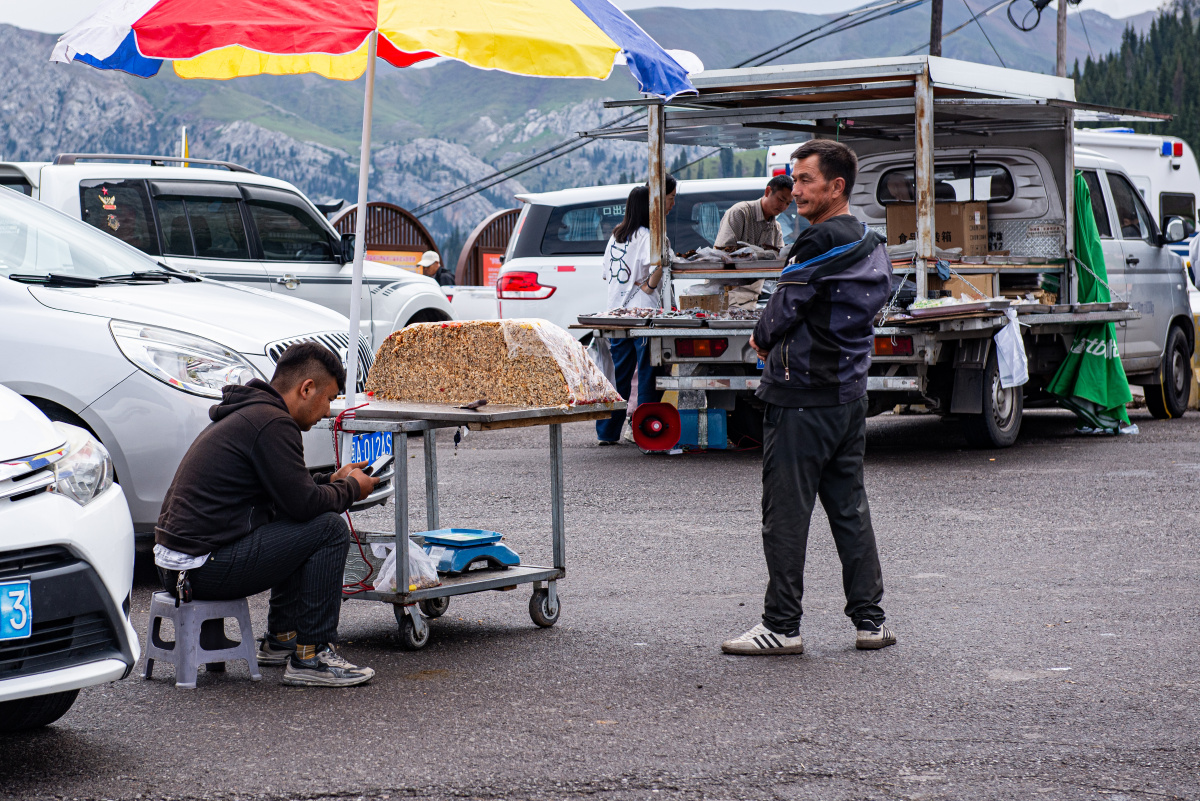 2024年8月拍摄于新疆。卖切糕的摊位总是没有什么人。