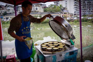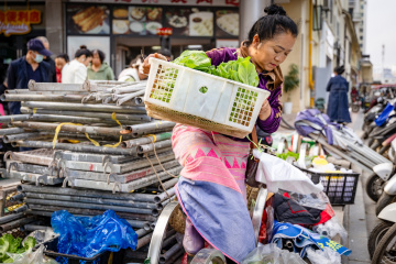 晨露沾筐,日暮收摊,吆喝声里藏着累,竹筐底下压着家。