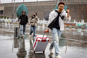 雨落长安,街巷朦胧。水汽漫过青砖与车流,伞下藏着各自的归途。一伞一世界,一雨一长安,寻常日子里,藏着最动人的人间烟火。