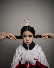在拍摄“关爱儿童 拒绝暴力”主题时,我构建了一个个压抑场景:狭小空间内,错综复杂的线条象征着 长辈口中的规矩,脸上惊恐与绝望被精准刻画,氛围令人窒息。我深知这影像承载着重量,愿其能如星星之火,点燃大众对儿童关爱的热情,助力重塑一个远离暴力、充满温暖的儿童成长环境,让每朵花蕾都能自由绽放。本系列通过解构传统儿童肖像的甜美范式,以超现实置景与符号化隐喻呈现童年期未被言说的情绪褶皱。运用一些载体,构建出...
