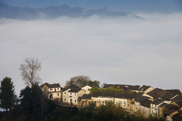 拍摄于安徽休宁县木梨硔,这里群山环抱,一座小村庄位于群山之巅,云雾缭绕,景色与众不同。