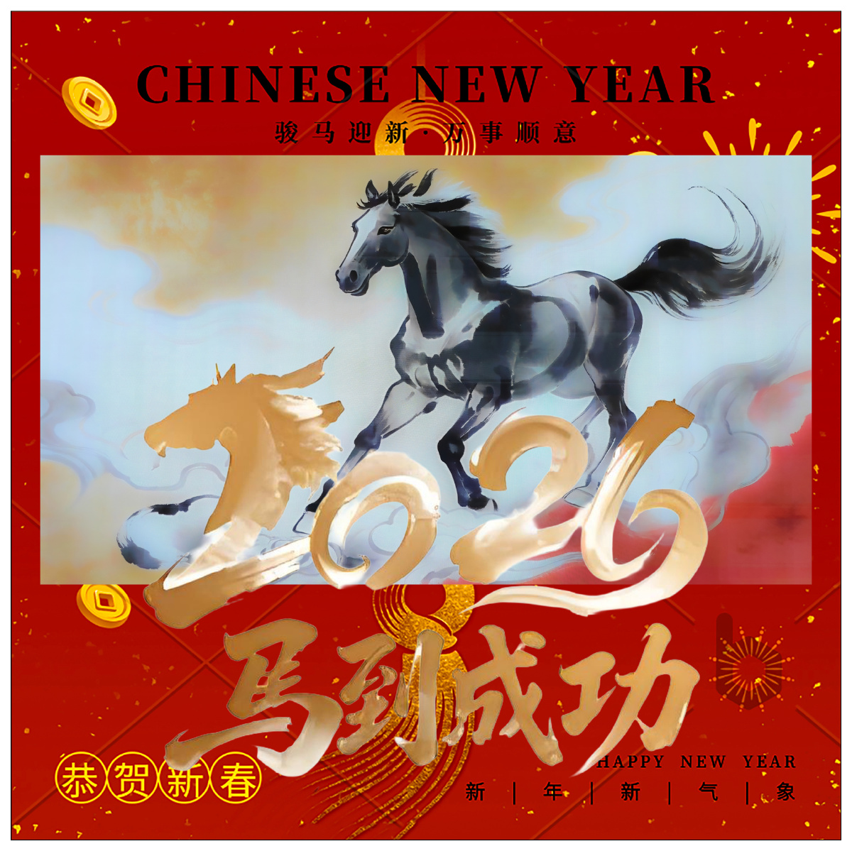 墨马破云,金辉铺野,2026的鎏金刻度,正随奔蹄跃然眼前。 这一年,以热爱为鞍,让活力作缰,把奔马的劲,揉进朝暮日常的肌理里。晨光里舒展肩背,如骏马蓄势待发;三餐中尝遍烟火,把平凡日子酿出回甘;步履间奔赴热爱,让每一次前行都有蹄疾步稳的底气,让每一次呼吸都有蓬勃生机,每一次转身都有无限可能。 以梦为马,皆是坦途;金辉落时,万事可期。丙午新春,愿你如这骏马奔春,满身清健之气,一腔热血,行无疆,意无界,马到功成处,皆是心之所向。