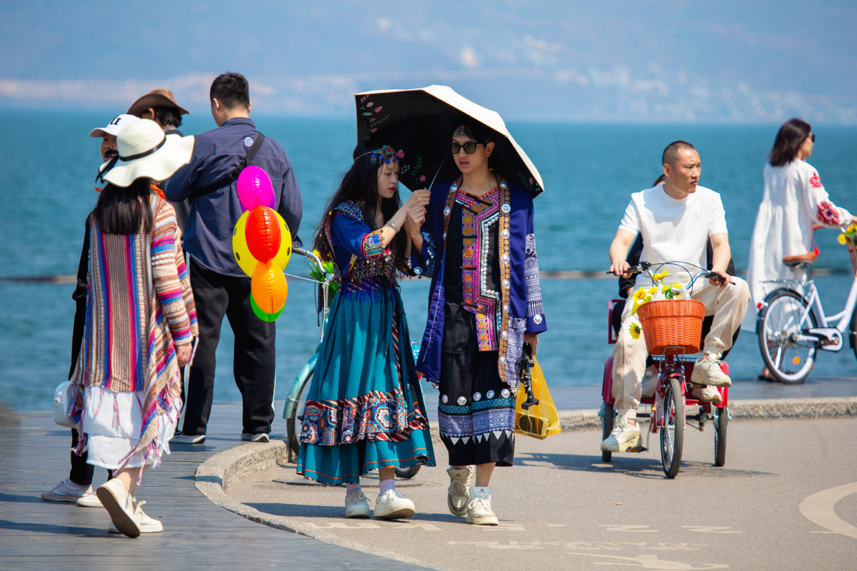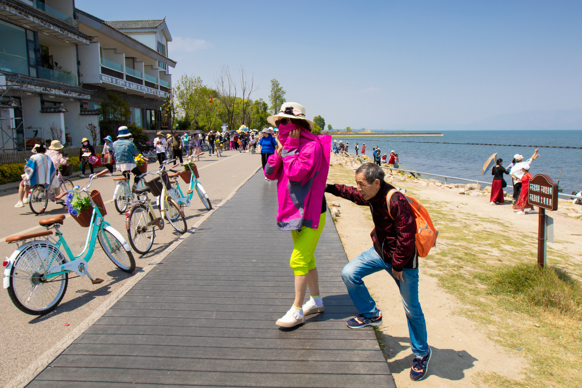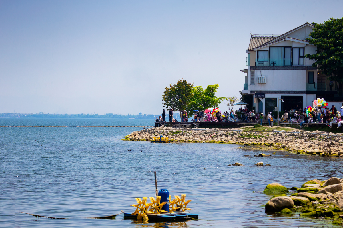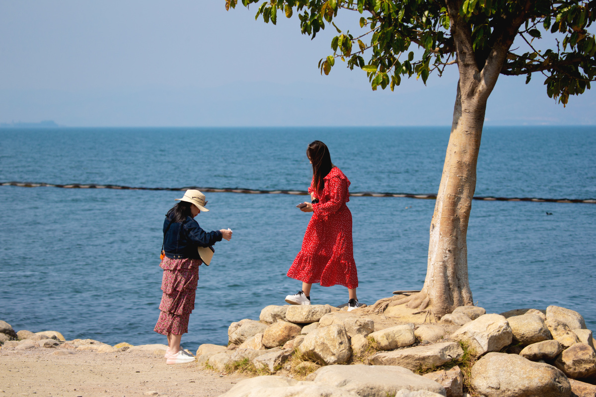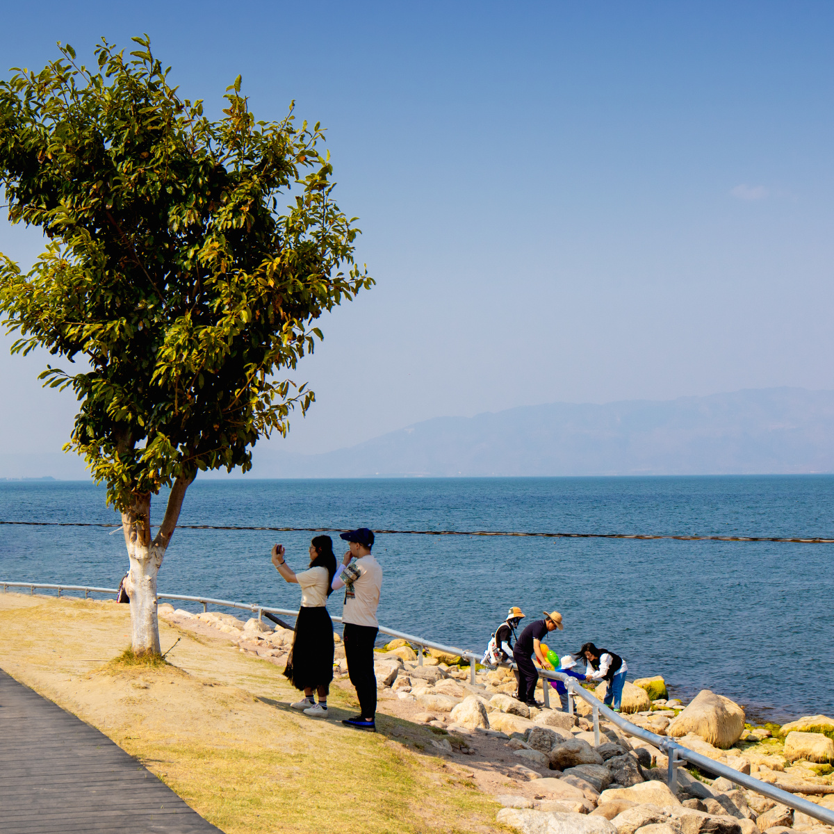 一缕春风,几滴春雨,比之龙龛码头,我们在S弯见到的洱海果然就清亮了许多。 这是洱海又一处新晋的网红打卡地,其实是洱海生态廊道沿着洱海蜿蜒曲折,在磻溪村这一段,刚好形成了一个好看的S弯,磻溪村,也因为这一个弯道而走红网络。 阳光之下,只见海天一色,环境开阔而清幽,难怪每天都会吸引众多普通游客、网红直播者、自带摄影师的旅拍者……来到这里,以洱海为背景,摆着各种姿势,拍出各自心目中美美的照片和视频…… #2023拍照不要停 #我的旅行影像日记 #今日份摄影