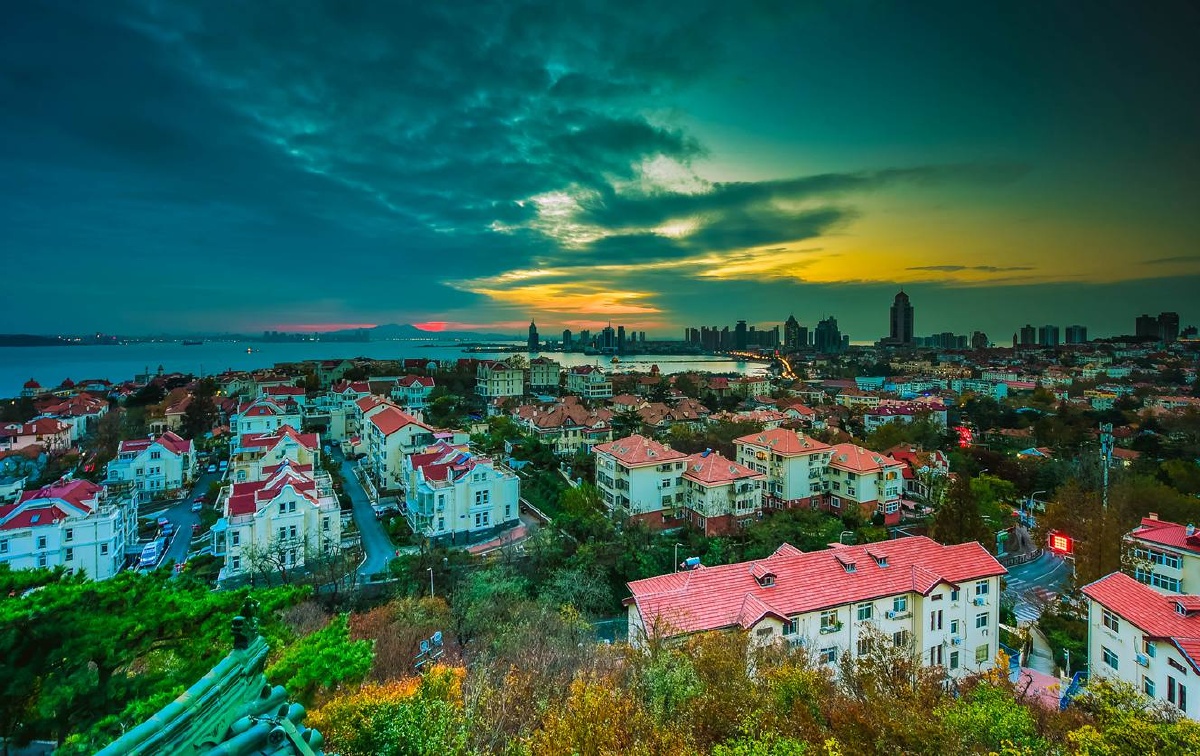 青岛深秋傍晚的城市