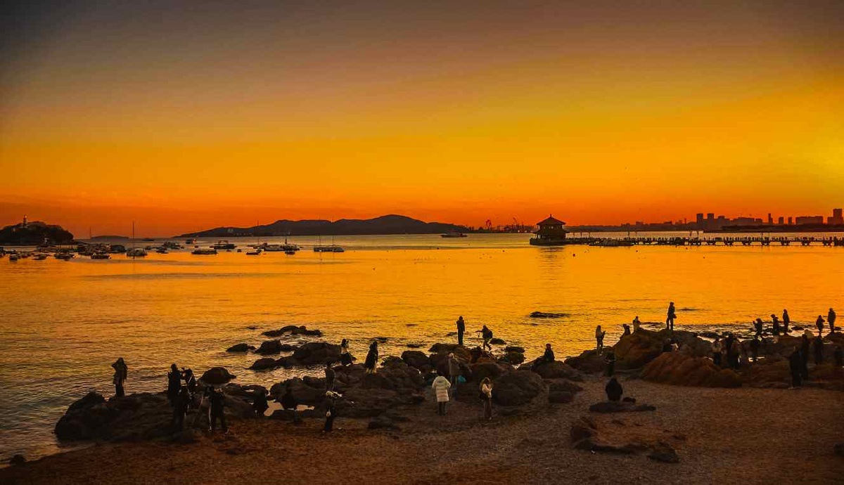 青岛晚霞中的海湾
