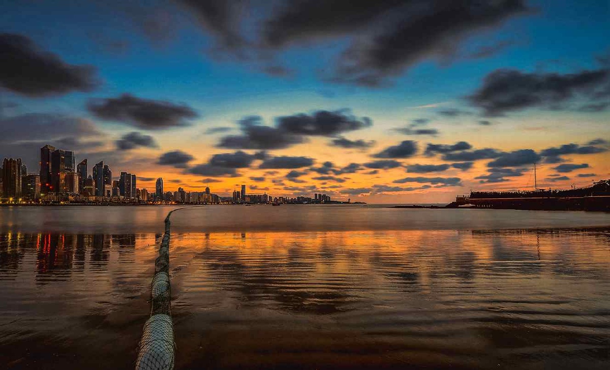 本片摄于青岛冬日清晨的浮山湾畔,天气寒冷,游人绝迹。