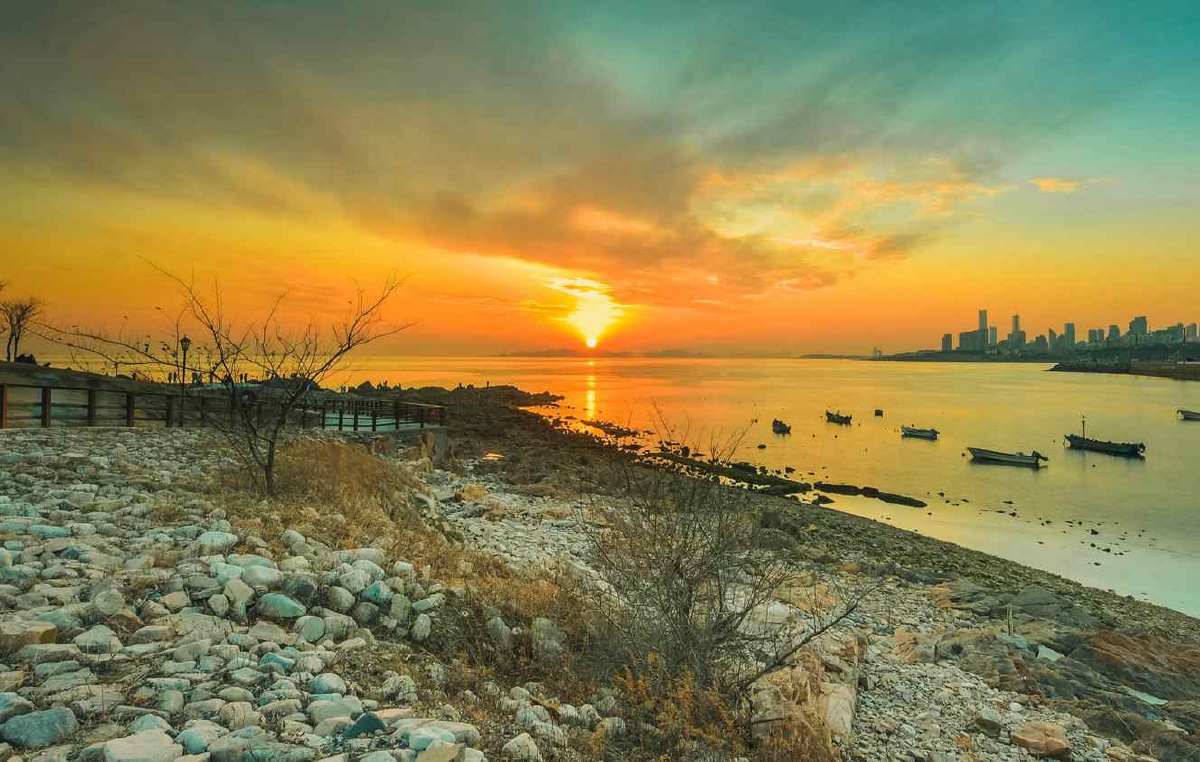 青岛晚霞中的城与海