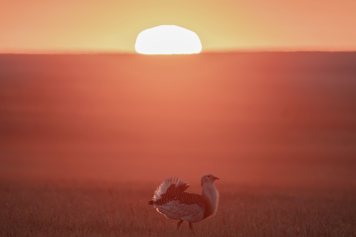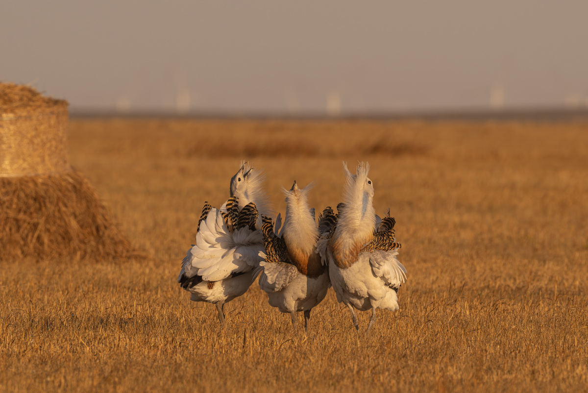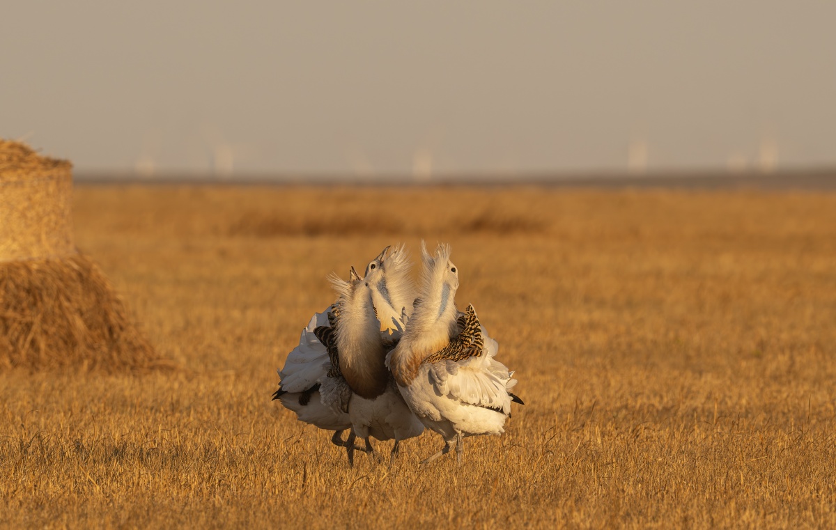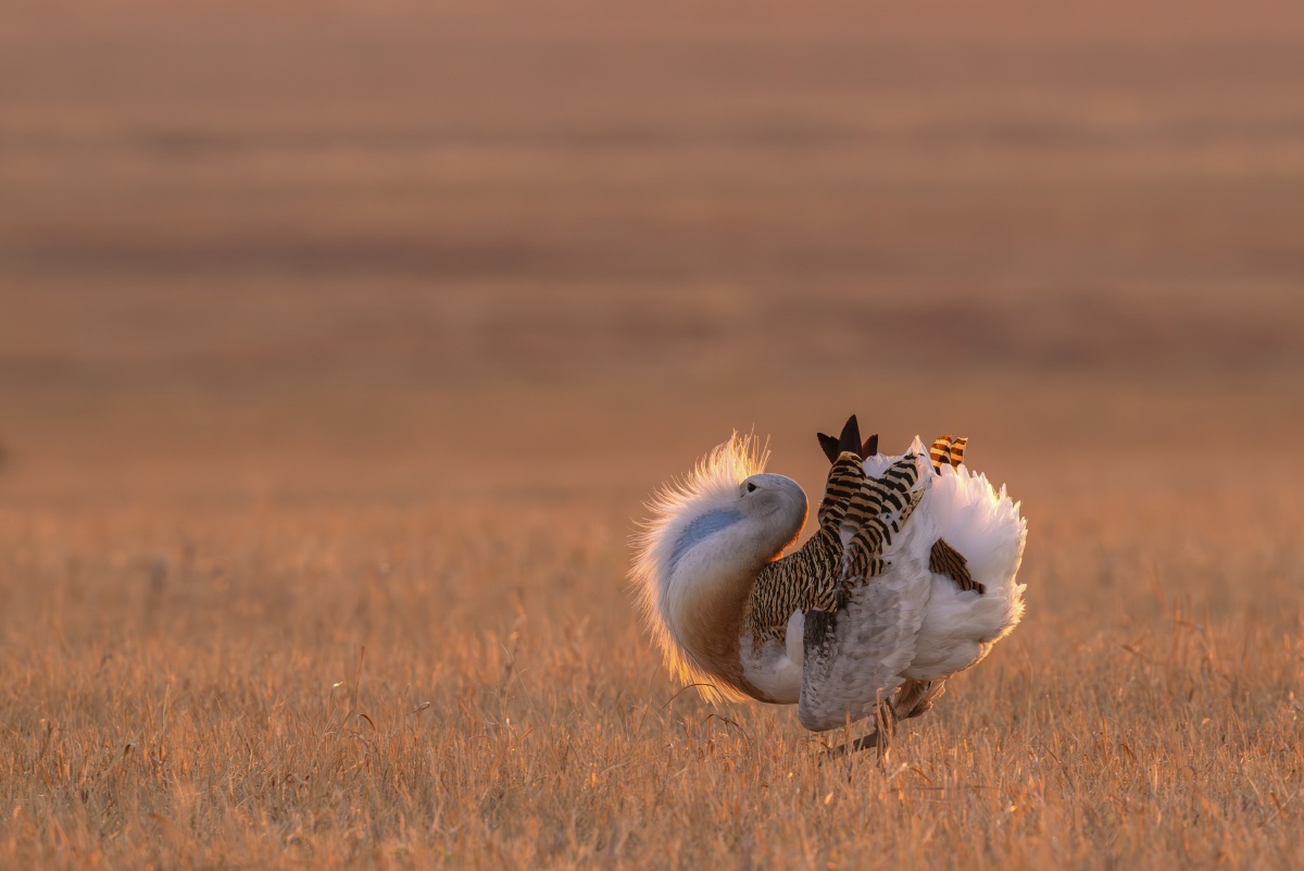 这是春天的大鸨雄性,在温暖的春天里,或翻花示爱,或几只一起翩翩起舞,以吸引雌性。