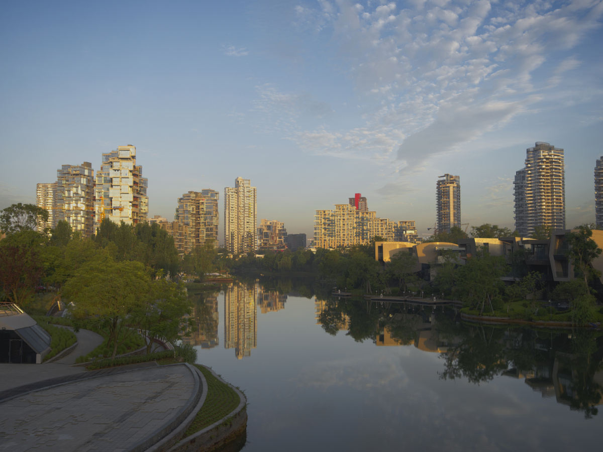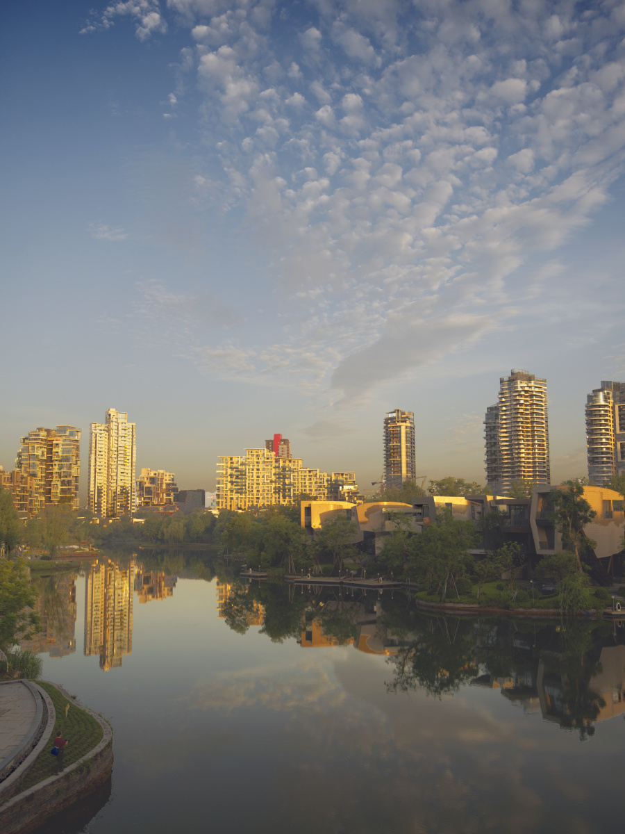 麓湖是一座以生态资源为基底,聚合居住、产业、休闲娱乐配置为一体的新城,城区的建筑别具风格。