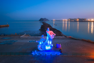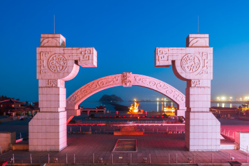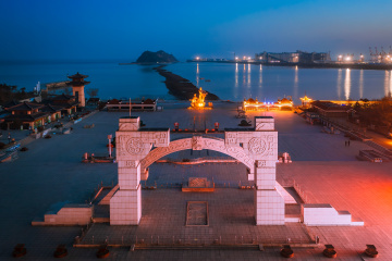 ytj7190 海边黄昏景色-锦州山海广场