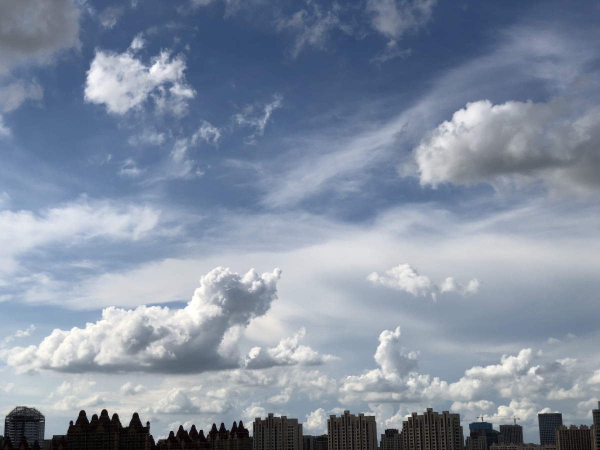 这些天的天气非常不错,虽然已经是数伏了,但是气温却还是很凉爽宜人。时不时就会突然间来一场雷阵雨,然后就会雨过天晴,阳光依旧明媚,天空是湛蓝湛蓝的,空中漂浮着千变万化的云彩,抬头仰望蓝天白云,总会令你浮想联翩……。
