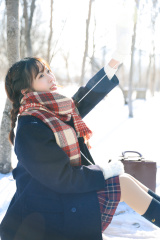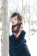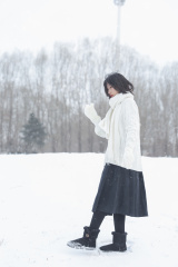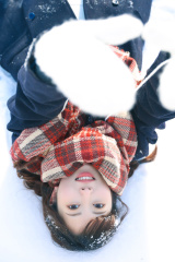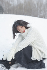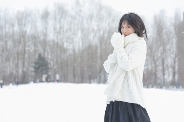 【ヒラヒラと降りだす 空を見上げては 雪に優しく キスしよう 雪花缓缓飘落,我抬起头仰望天空,对着雪花献上温柔一吻.】