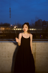 超可爱的客妹,从抖音翻到我微博,我们拍完一组内景后出来一边聊天儿一边等天黑~她说木有想法怎么妆造都好听我哒❤