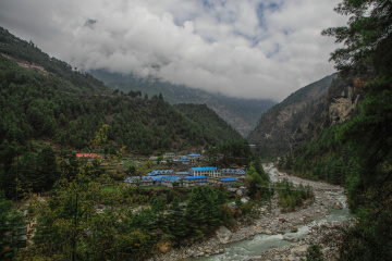 阳光脚步 EBC路上,恬静的夏尔巴村庄