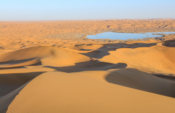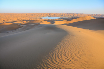 阳光脚步 雪后腾格里沙漠:不是雪化了,而是风吹沙跑掩埋了雪迹
