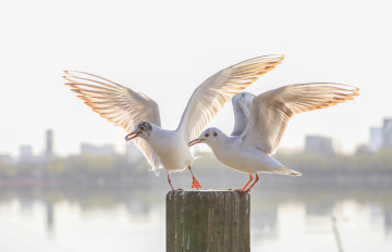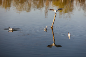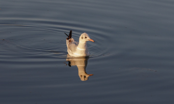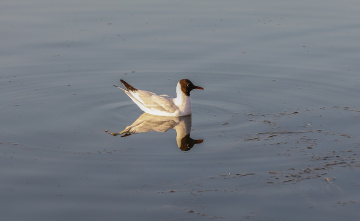 对影成三鸟:水中游曳的红嘴鸥,水面水下,我们的眼中,多维多角,对影成仨。