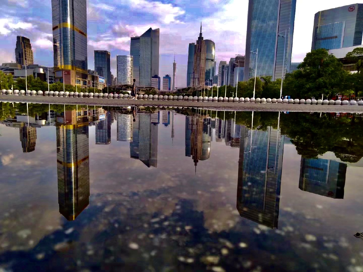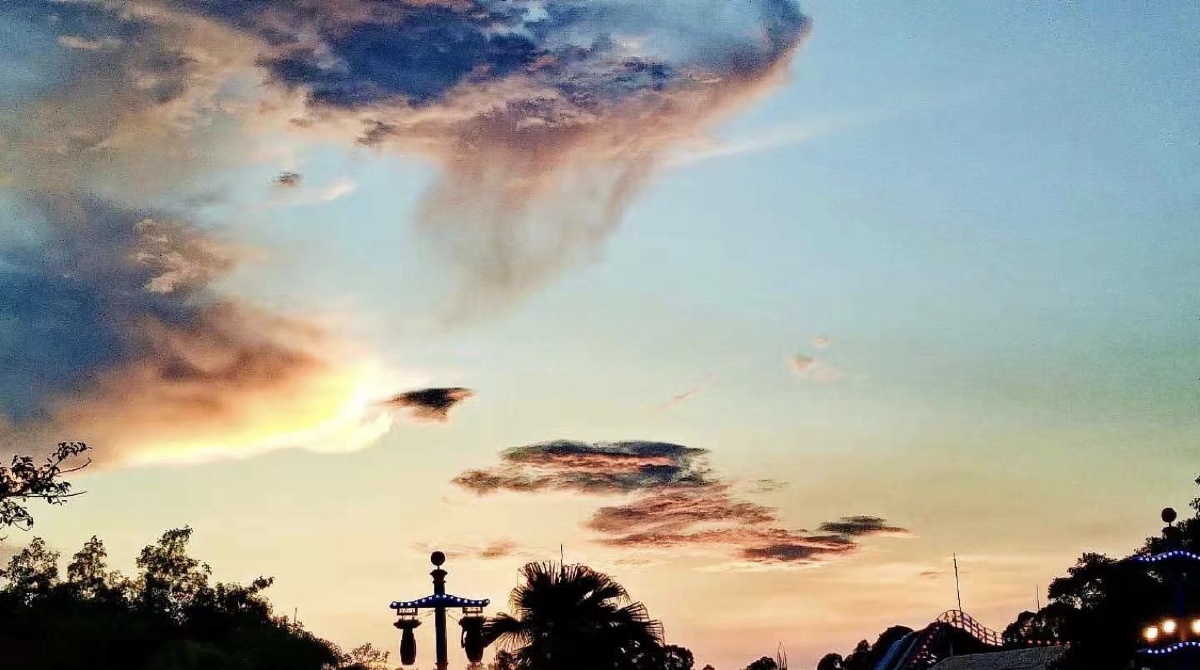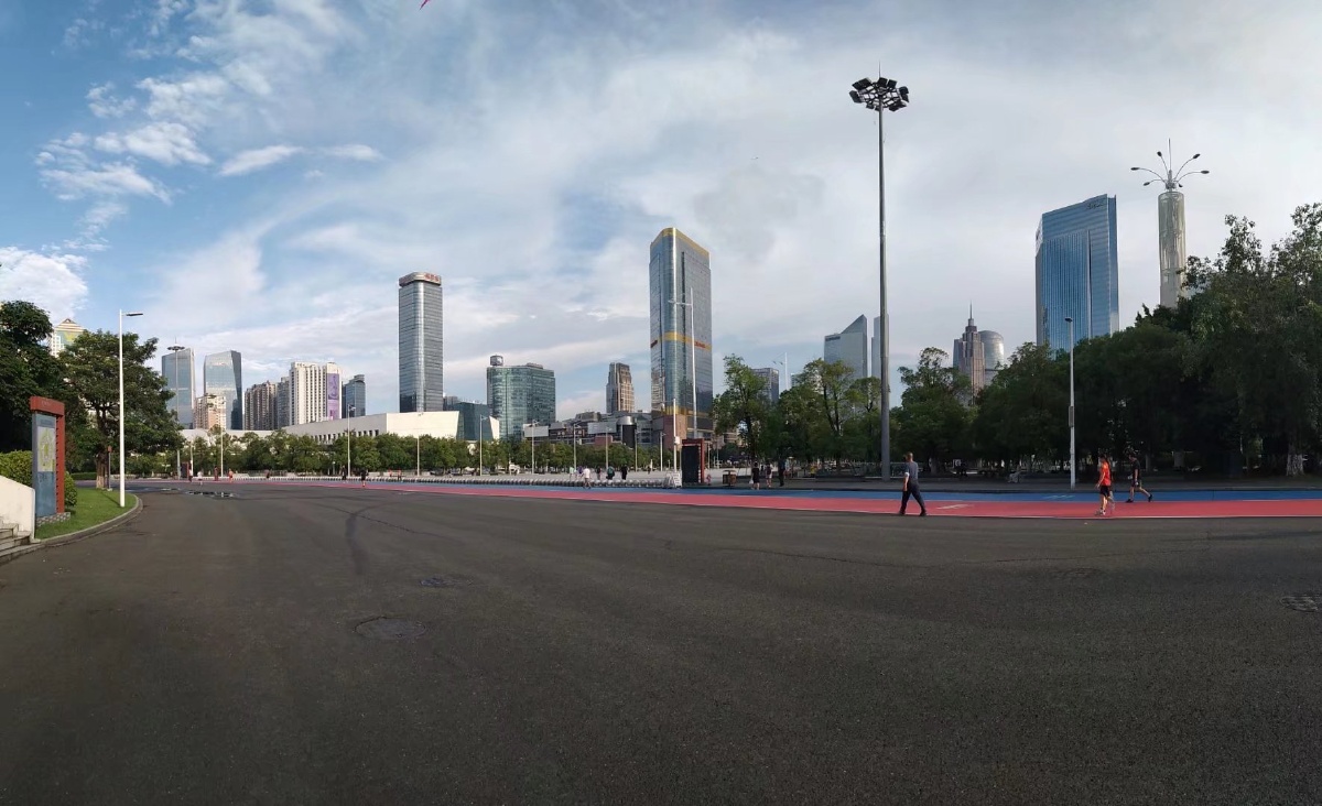 雨后的体育中心,傍晚的天空,夜晚繁华的天河,利用无人机俯瞰南湖