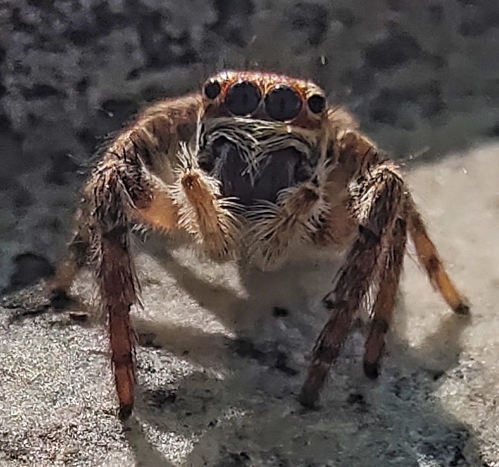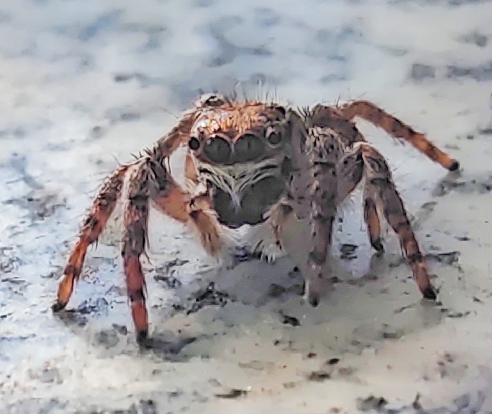 跳蛛,是蜘蛛目跳蛛科的统称。跳蛛科是蜘蛛目中最大的科,全球约有3000种。跳蛛体长多数不超过15毫米,体色绚丽多彩,在阳光下常呈现金属光泽。雌蛛和雄蛛的体形和大小差别不大,但色彩和斑纹常有明显的差异;体多短粗而稍扁平,步足粗短强壮,善于蹦跳,因而得名。跳蛛主要分布在热带和亚热带地区,遍布山间、丘陵、平原、草地、海滨、农田以及家庭院落、篱笆、墙壁、窗台等场所。跳蛛为徘徊性蜘蛛,除隐匿、蜕皮、产卵时营巢外,平时不结网,性凶猛,能捕食多种害虫。跳蛛视力佳,有独特的分辨能力,以潜行、追逐和跳跃等不同动作捕捉猎物。跳蛛的巢常在树皮下、叶下、落叶丛或墙缝等处,巢呈薄囊状,在巢中产卵、越冬或隐蔽。跳蛛食性广泛,会捕食遇到的各种昆虫。雌蛛交配后不久开始产卵,经过约一个月的卵期后,卵便开始孵化。跳蛛的寿命通常只有几个月。