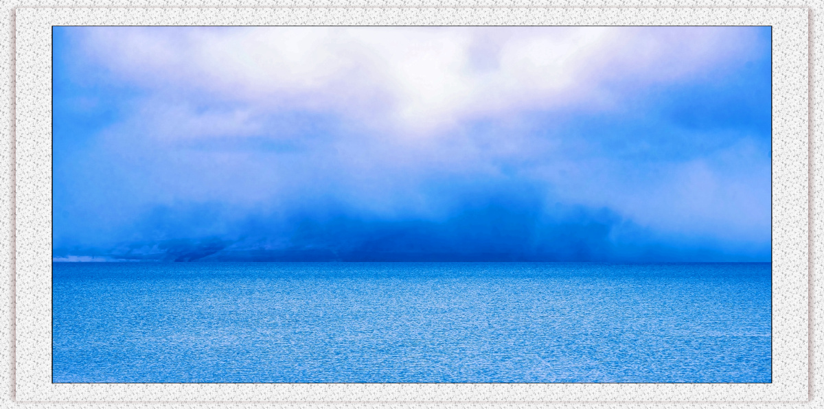 这样的镜像还是第一次遇到。近处的湖水,远处的山峦,辽阔的天际,都呈现或深或浅的蓝色,画面虽然单调,但还算整洁干净。