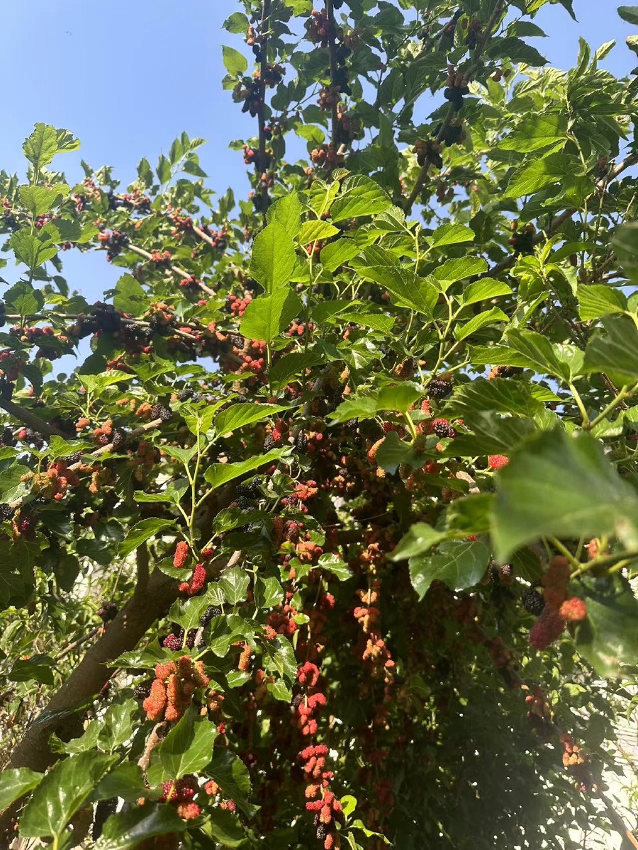 . y桑树的叶子翠绿欲滴,与紫黑色的桑葚相互映衬,构成一幅美丽的画卷。而那桑葚的甜美,仿佛就是大自然的馈赠,让人心生感激。