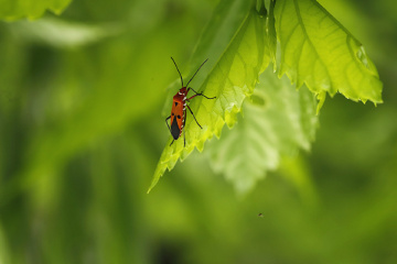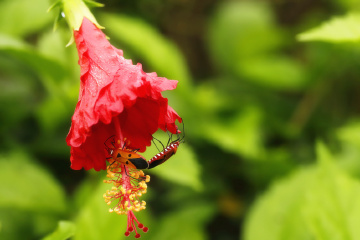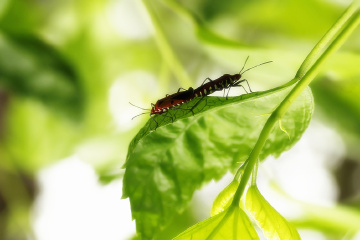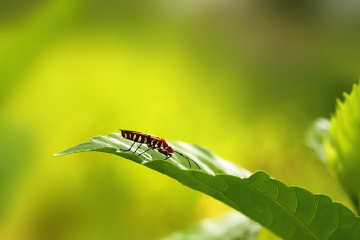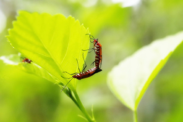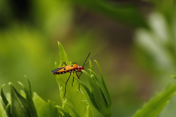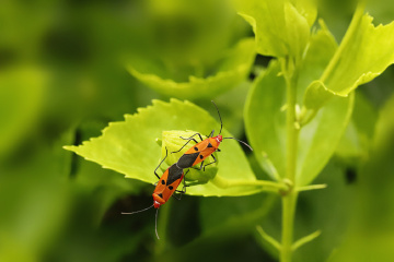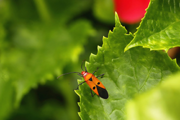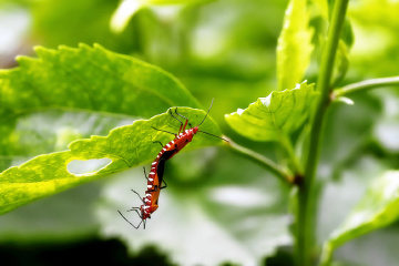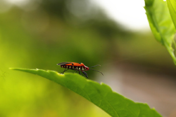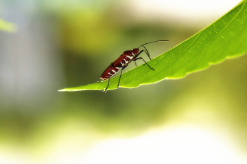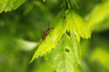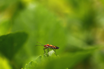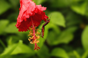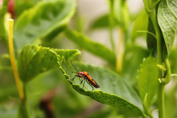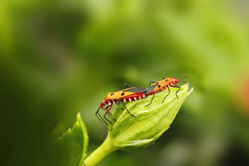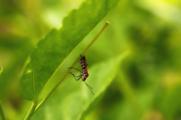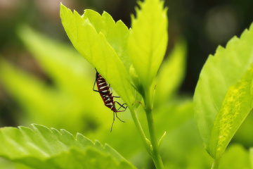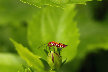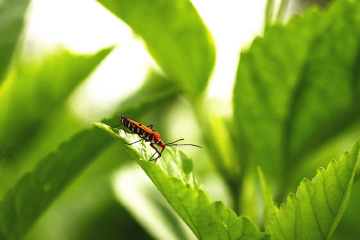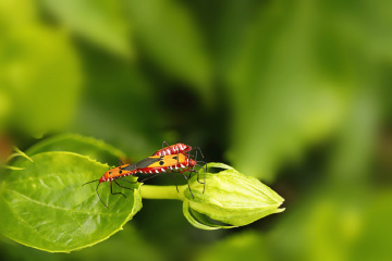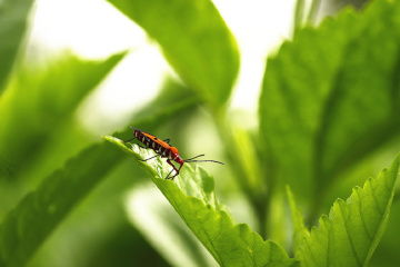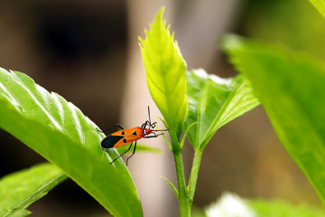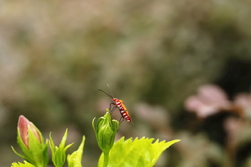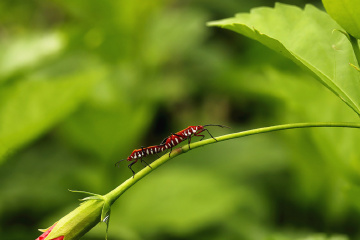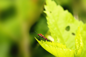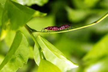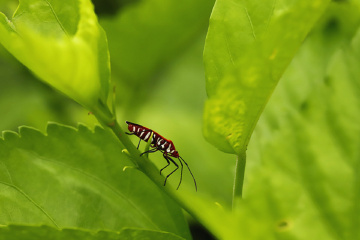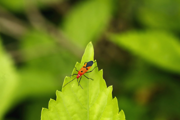 独品可人 虫趣:活跃朱槿绿叶的棉红蝽