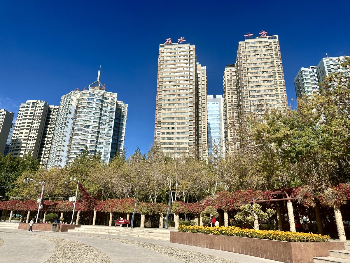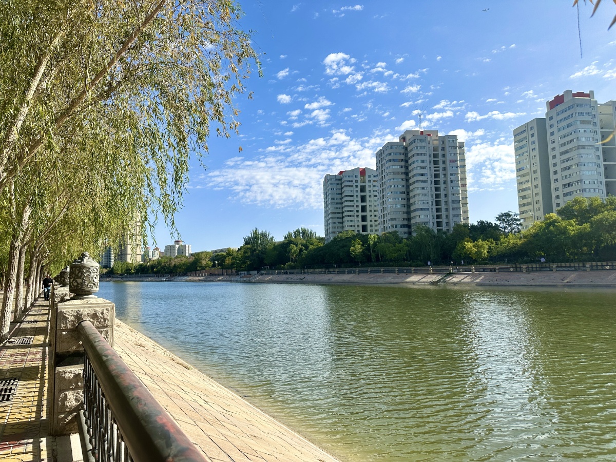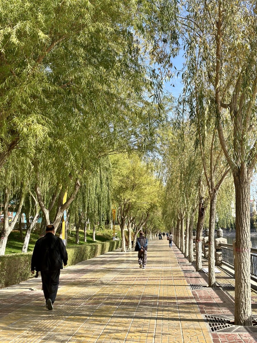 2023年10月16日,新疆巴音郭楞蒙古自治州,库尔勒。库尔勒城市环境不错,自然绿化非常好。
