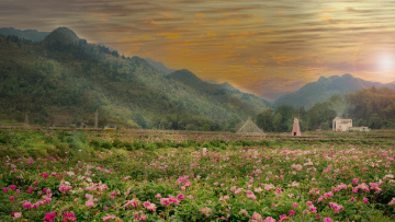 只为一个承诺,我要陪你看最美的夕阳,还会闻到那风中飘来的淡淡稻香。